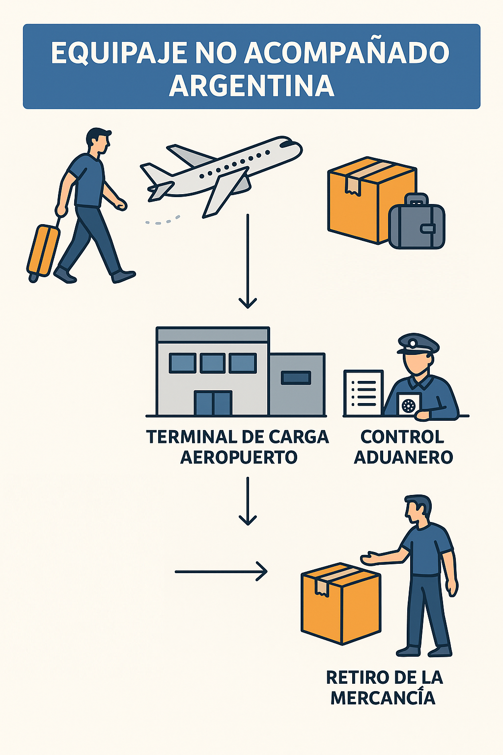 El equipaje no acompañado se refiere a los efectos que forman parte del equipaje del viajero, pero que llegan al país por un medio de transporte separado o llegan como carga, no junto al viajero. Debe ingresar dentro de los 3 meses anteriores o hasta los 6 meses posteriores al arribo del viajero, y solo se libera después de su llegada al país.